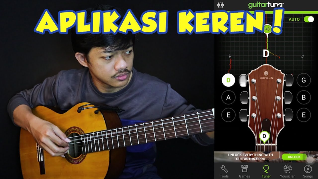 Cara termudah pakai app gratis seperti GuitarTuna, Fender Tune, atau Tuner Gitar di Play Store. Colok gitar ke HP kalau elektrik, atau dekatkan mikrofon untuk akustik. App tunjukkan apakah nada terlalu tinggi atau rendah. Putar tuning peg perlahan sampai jarum hijau.